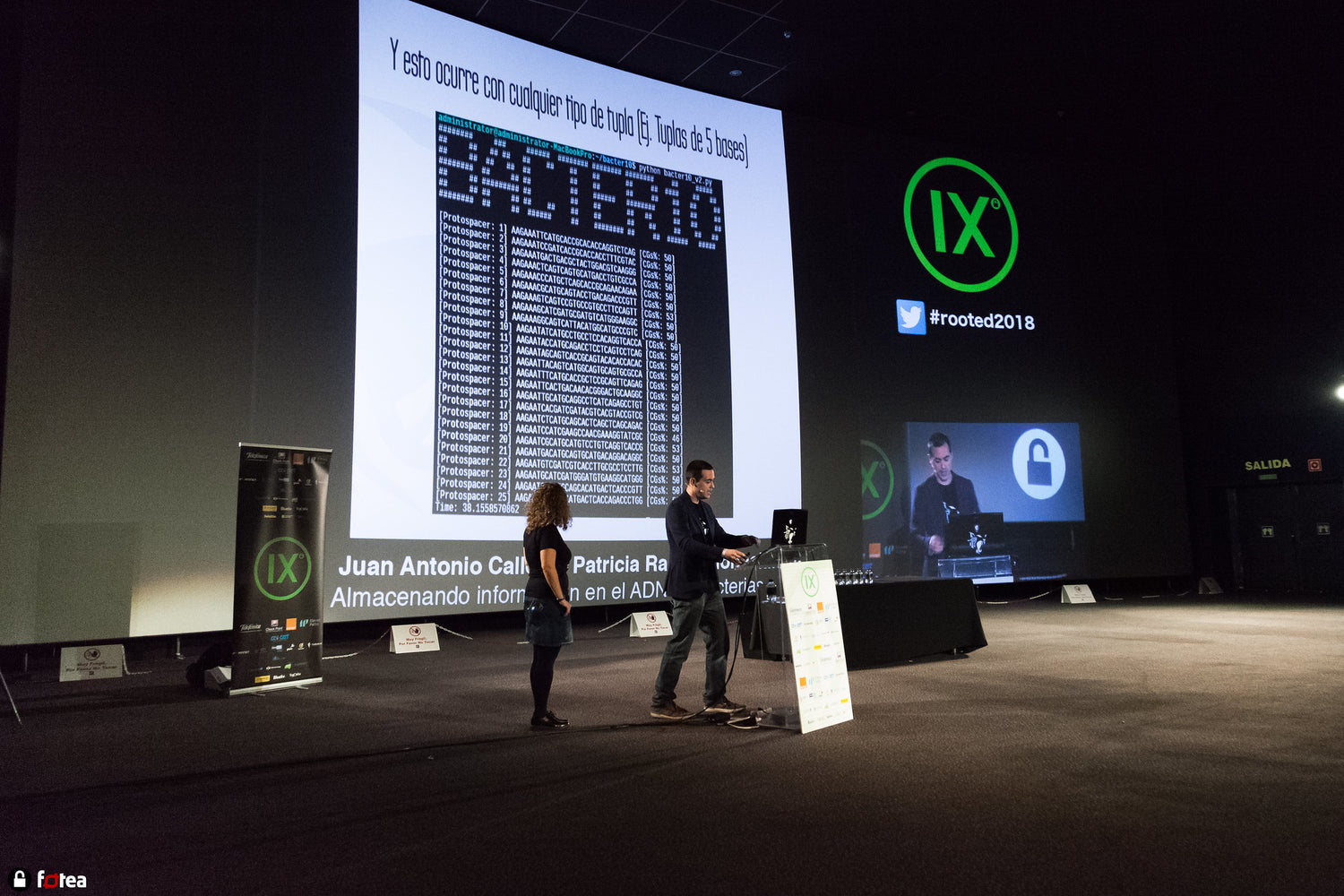 2018ko martxoaren 18an, El Confidencial egunkariak gure zuzendari nagusi Juan Antonio Calles doktoreak eta gure kolaboratzaileak, Patricia Rada Llano doktoreak, RootedCON kongresuan aurkeztutako ikerketa-lanaren oihartzuna jaso zuen. Proiektu honetan Escherichia coli bakterioak disko gogorretan bihurtzeko 'software' aitzindari bat aurkeztu genuen, datu bitarrak (unak eta zeroak) 'DNA' sintaxira (hau da, adenina nukleotidoetara) itzultzeko gai zen algoritmo bat erabiliz. ", timina, "T", guanina, "G" eta zitosina, "C"), berriz, nukleotidoen errepikapenek eragindako bihurtze akatsak eta arazoak saihestu eta murrizten dituzte.